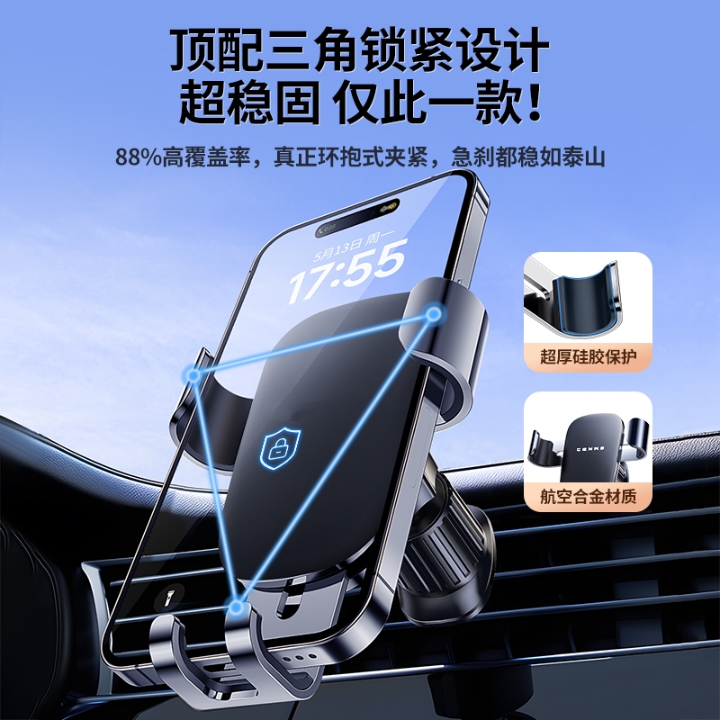 遙里遜鋁合金重力車(chē)載手機(jī)支架出風(fēng)口導(dǎo)航支架YLX-03-12